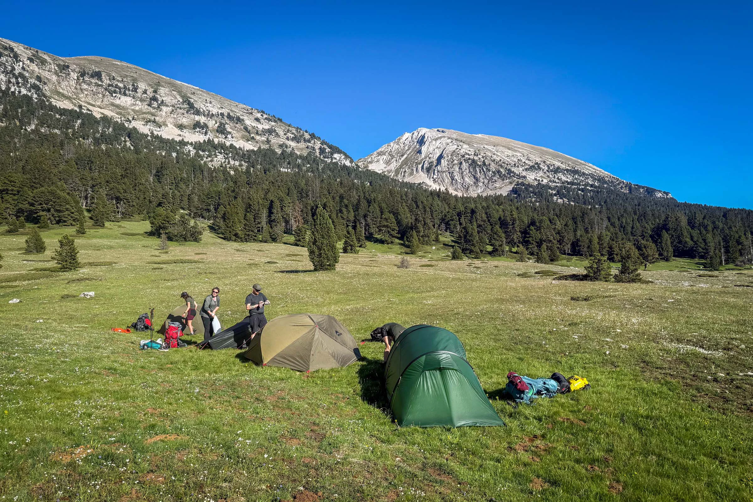 • Twee tent/bivakovernachtingen op een camping, vier in de wilde natuur op het massief